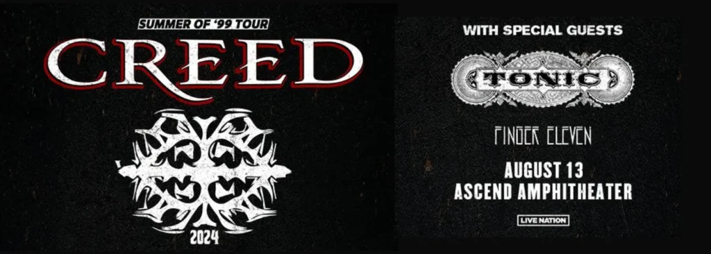 A rockfest for the ages awaits you on Tuesday, August 13th, in Creed’s “Summer of ‘99” concert LIVE at the Ascend Amphitheater in Nashville, Tennessee. Tickets are selling fast — click the link above to secure yours ASAP!